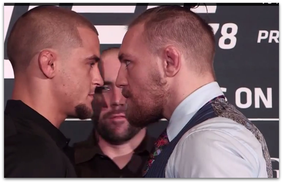 I’m not going to lie. I don’t watch too much mma simply because I don’t have cable nor the time to sit down and watch too much tv. But just looking at that picture, and not knowing who was who, you knew who would win that fight. Connor not only had the eyes of a wolf but he’s looking over the other guy like he was ready to tear him apart right then and there. The other guy looks wimpy in comparison.